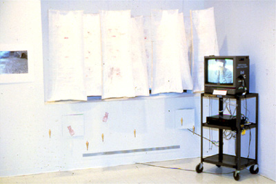 and dirt on fabric, taffeta on paper, book pages on rice paper, and plumb